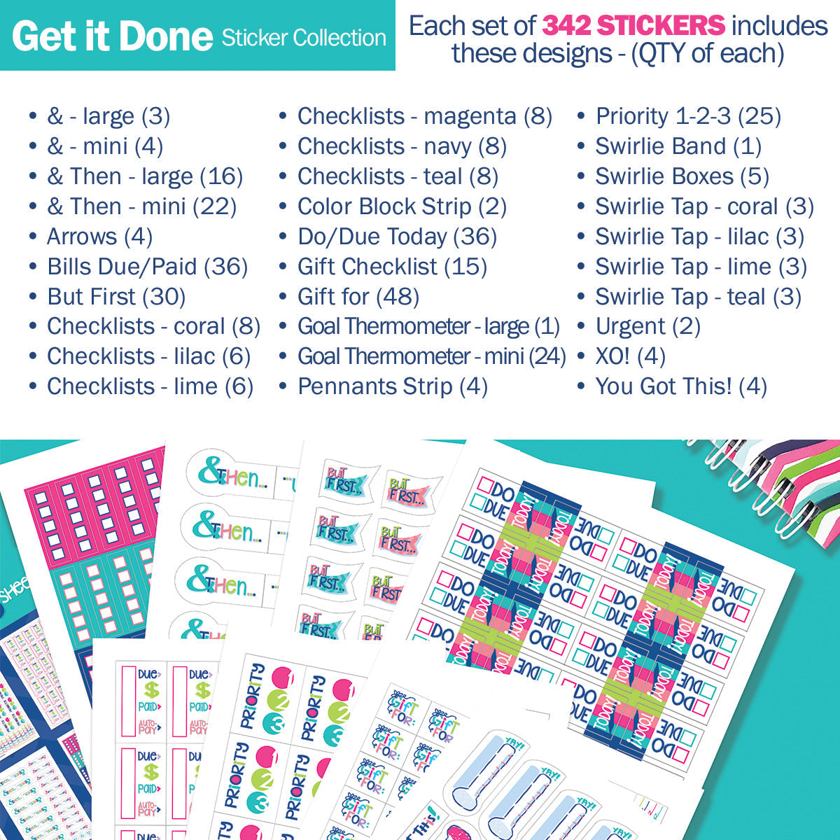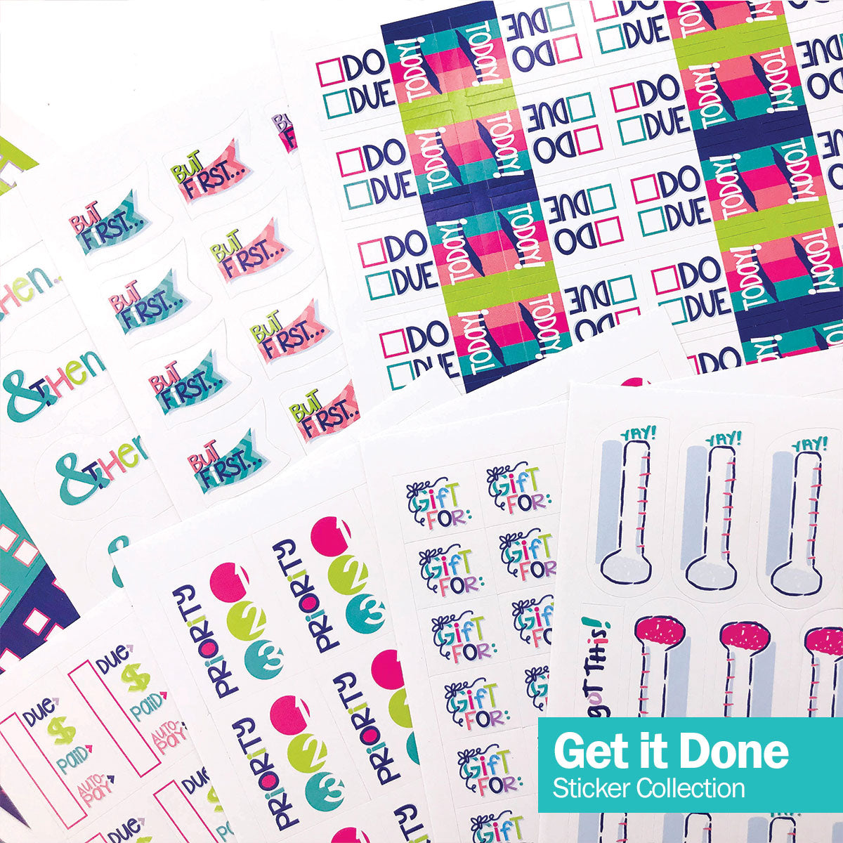 Get it Done, Make it FUN (342 Stickers) - checklist strips, goal thermometers, priority 1-2-3, gifting to-do's, "but firsts" and "& thens"