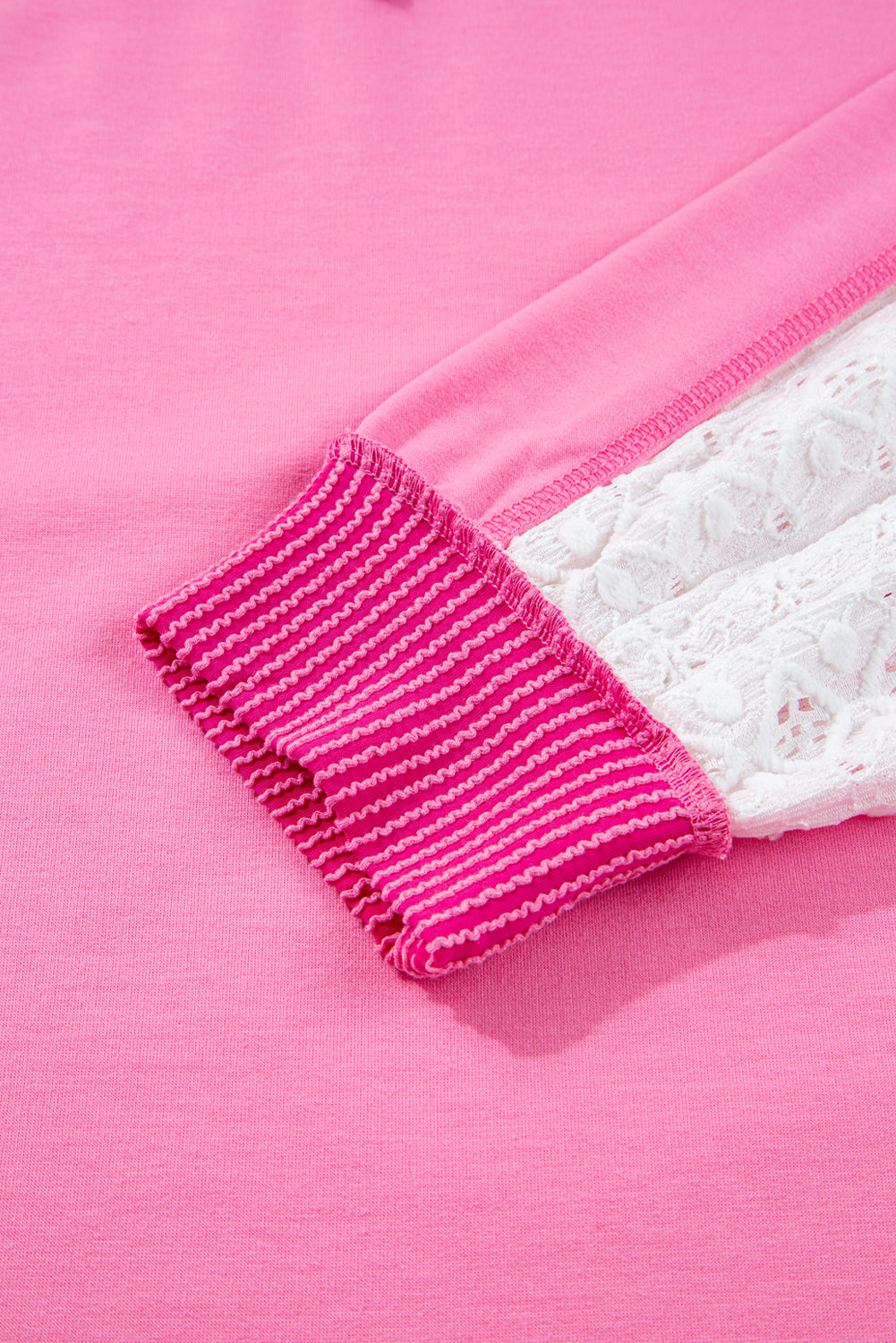 Bonbon Lace Patchwork Corded Trim Plus Size Long Sleeve Top