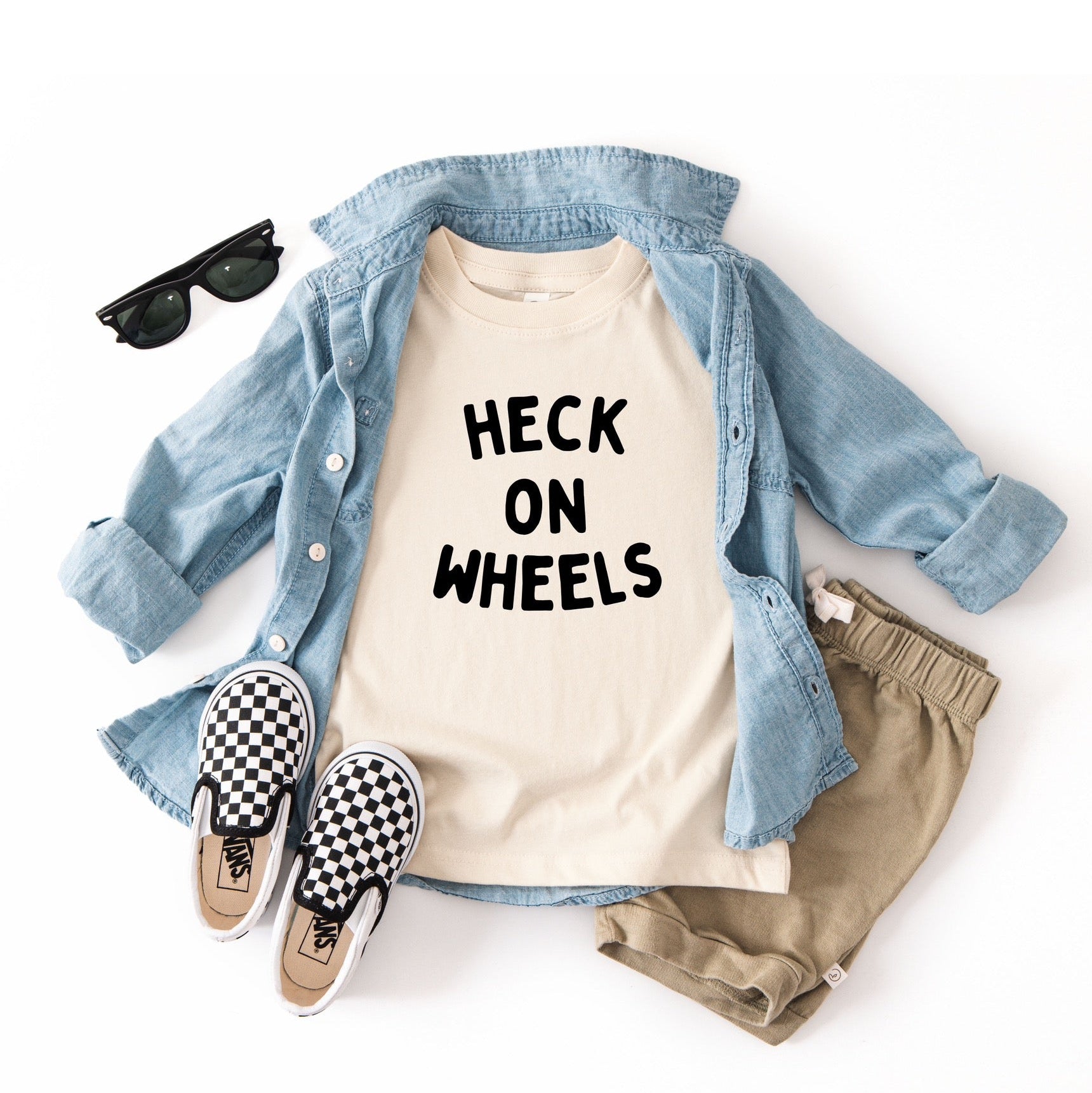 For the kid who comes with extra volume, maximum speed, and a full personality. If “slow down!” is your most-used phrase and you’ve ever had to chase a scooter barefoot, this one’s for you. The Heck on Wheels tee is made to celebrate the chaos. The joyful, high-speed, snack-in-hand kind of chaos. Because being wild isn’t a flaw… it’s a feature. Soft, durable, and built for kids who never sit still, this tee is equal parts cozy and hilarious. Let the world know: they’re not just on the move, they’re giving ‘em heck while they do it.