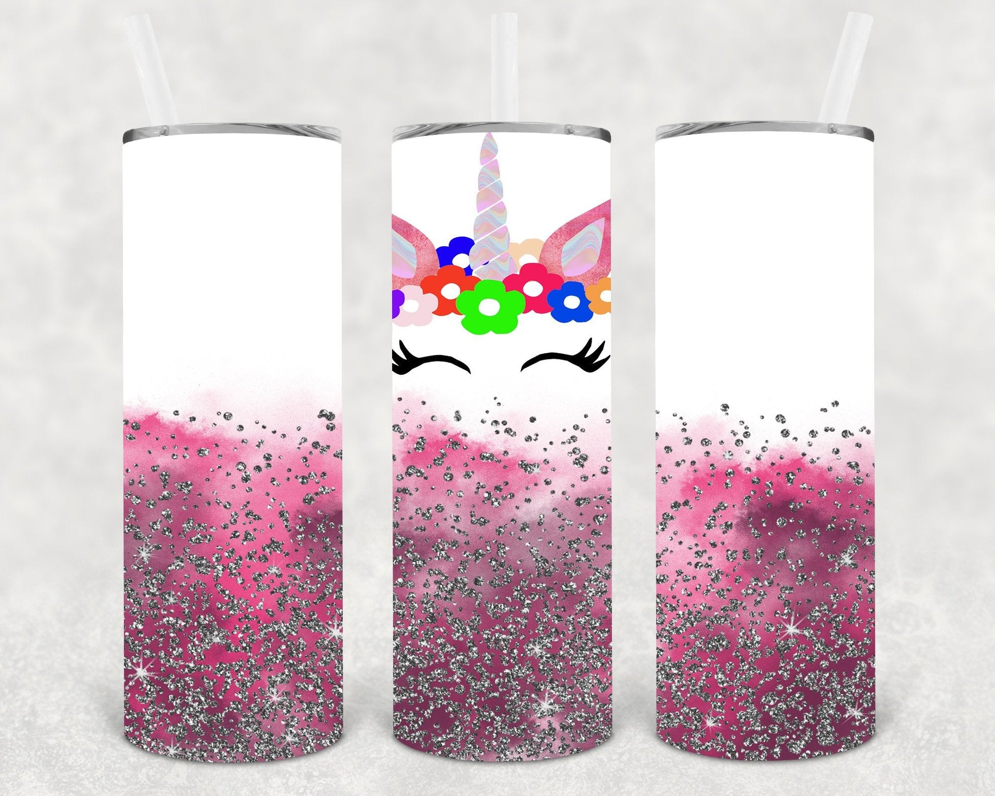 Pink Glitter Unicorn 20 oz Skinny Tumbler