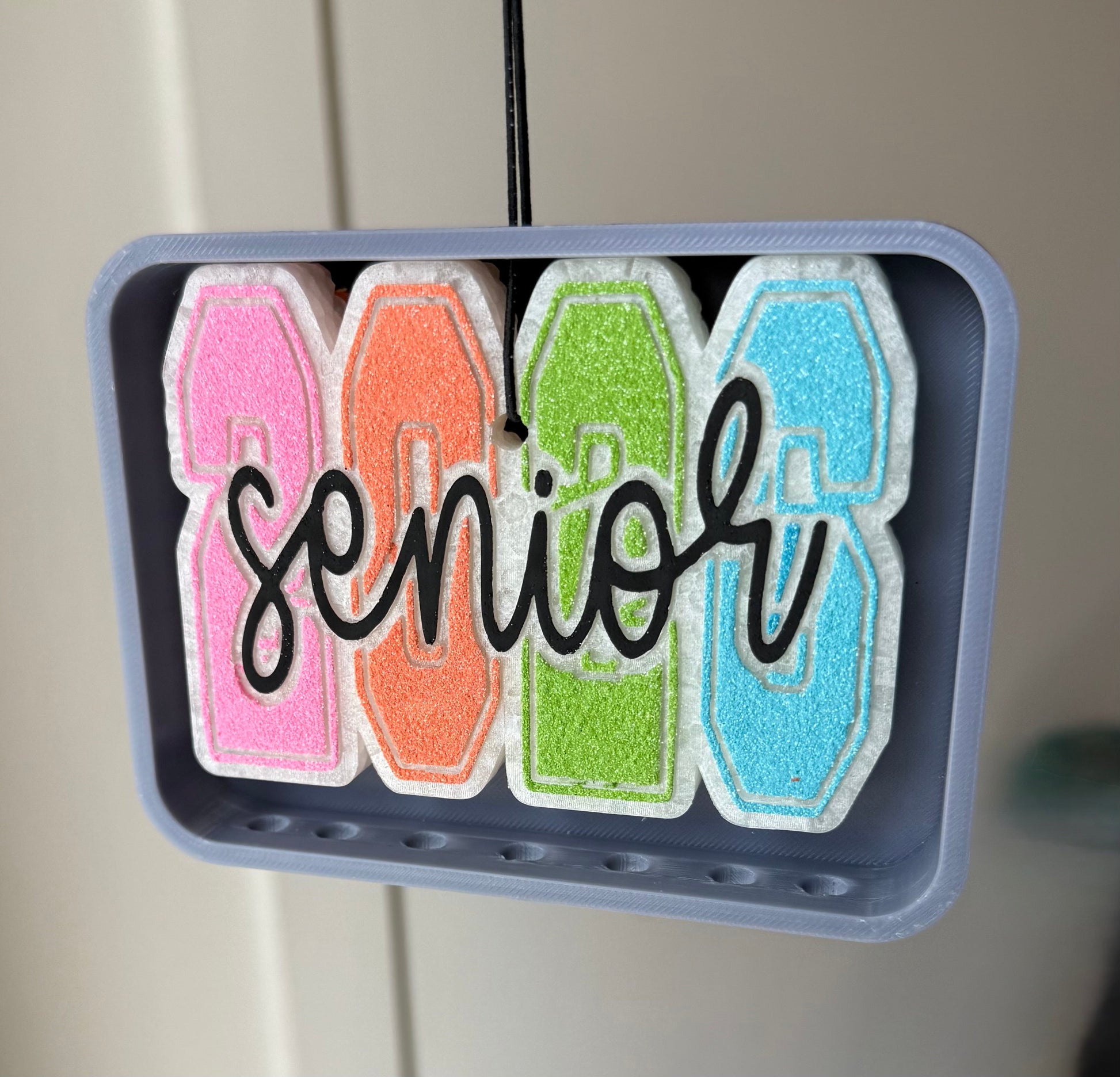 Honor your senior year with this made-to-order freshie designed exclusively for the Class of 2026. Each piece is individually crafted and arrives in a scent-proof bag with a convenient elastic string for hanging. Perfect for personalizing your locker, car, or room with class pride.
