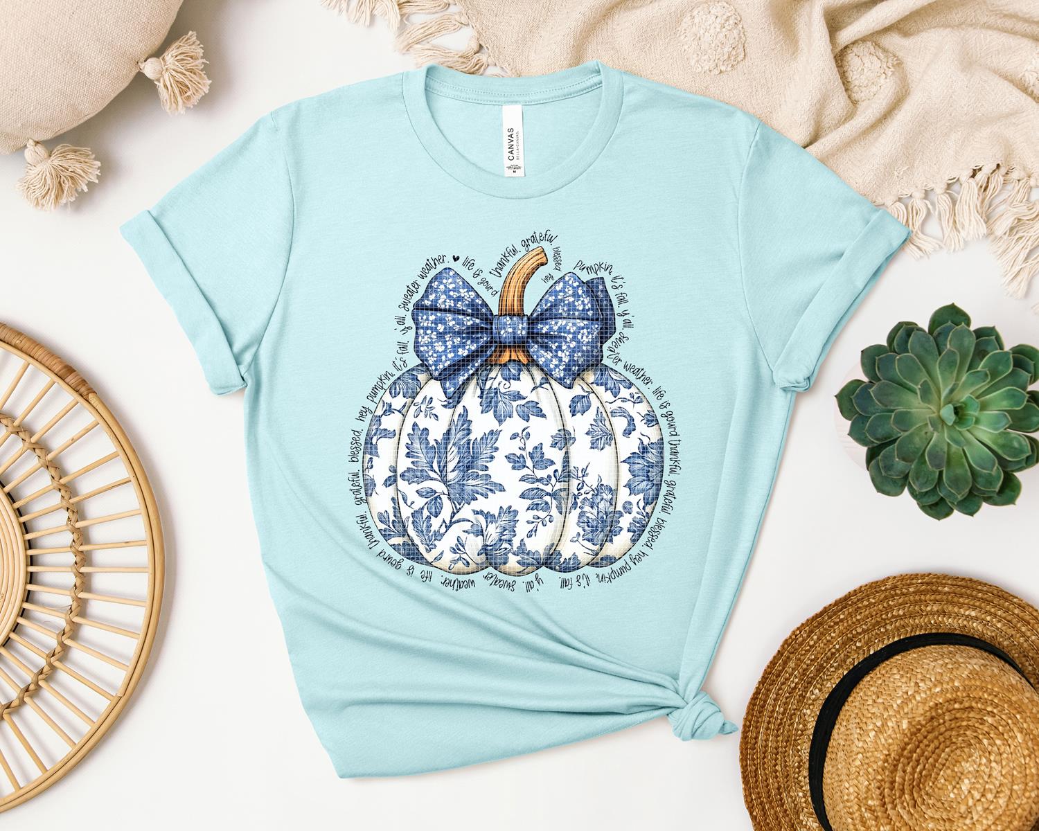 Thankful Grateful Blue Pumpkin Graphic Tee